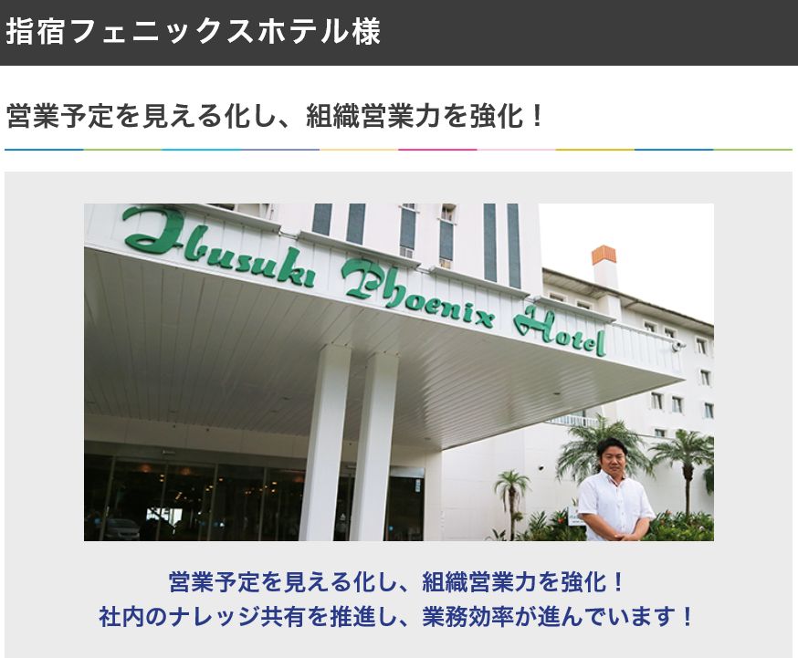 【導入事例】指宿フェニックスホテル様の事例を公開しました 2018年4月20日 指宿フェニックスホテル様の導入事例 事例の詳細はこちらをご確認ください。 指宿フェニックスホテル様事例詳細 最近の新着情報 更新日 2021年7月1日【共催ウェビナー:受付中】7/14開催:商談数を増やす、攻めの営業スタイルセミナー 更新日 2021年1月19日受付終了:【無償提供】WaWaOfficeテレワーク支援プラン 更新日 2020年12月2日【共催ウェビナー】12/10開催:オンラインを活用して「集客・商談」を最適化する!