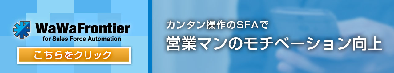 SFAを活用していく事で、様々な営業活動を支援する事が可能です。しかしSFAは営業担当者が入力してくれないと始まりません。WaWaOfficeシリーズのSFAサービス「WaWaFrontier」は入力が簡単な事が特徴のサービスです。営業担当者の日々の活動をストレスなく管理して売上向上を支援します。