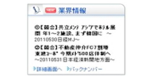 新聞、雑誌、Webなど各メディアに掲載された、自社、競合、業界の情報を知るためのコーナーです。