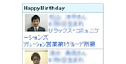 誕生日が近づいている社員を紹介するコーナーです。 社員が1200人になると、 互いに顔を知らない社員も増えてきます。 誕生日という、お祝いしやすい (声かけ、メールがしやすい)イベントを使って、社員間のコミュニケーション促進を図ります。