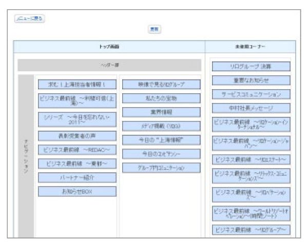 Web社内報は、今回のシステム構築の際に、アイアットOECとリロが共同開発した(その後「インターナルコミュニケーション」という名称で標準製品化)
